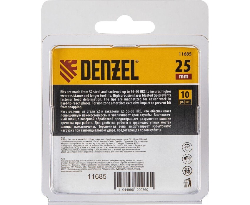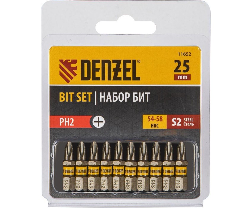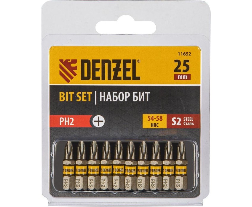 Бита DENZEL Бита PH2х25, сталь S2, шестигранный профиль, 10 шт. Е 6,3 11652