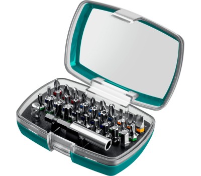 Биты C-Drive с цветной маркировкой типа шлица ″Color Code″. Выбор профессионалов, которым нужно часто менять биты Преимущества Цветовая маркировка бит позволяет пользоваться набором максимально быстро и комфортно Высококачественная легированная хромомолибденовая сталь гарантирует высокую механическую прочность Точная геометрия шлицов обеспечивает прочную посадку в крепеже Адаптер с магнитным держателем способствует быстрой и надежной фиксации насадки Эргономичный пластиковый кейс для удобного хранения и переноски Специальное гальваническое покрытие защищает от коррозии при работе в агрессивных средах Использование Предназначен для слесарных, монтажных и ремонтных работ.