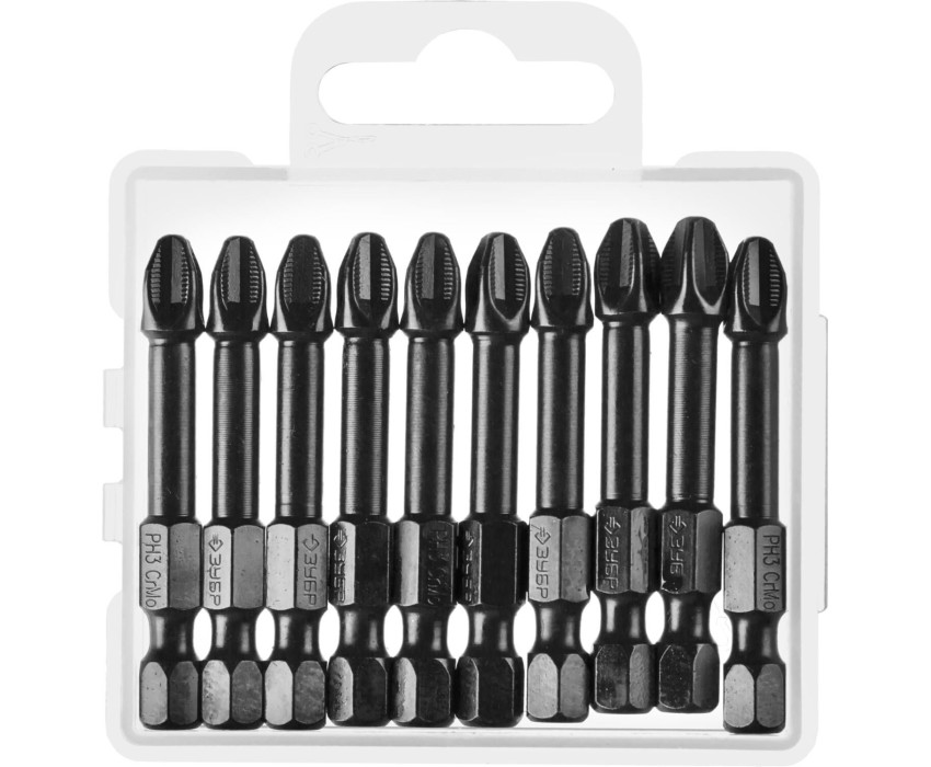 ЗУБР PH3, 10 шт, 50 мм, ударные биты, Профессионал (26021-3-50-S10)