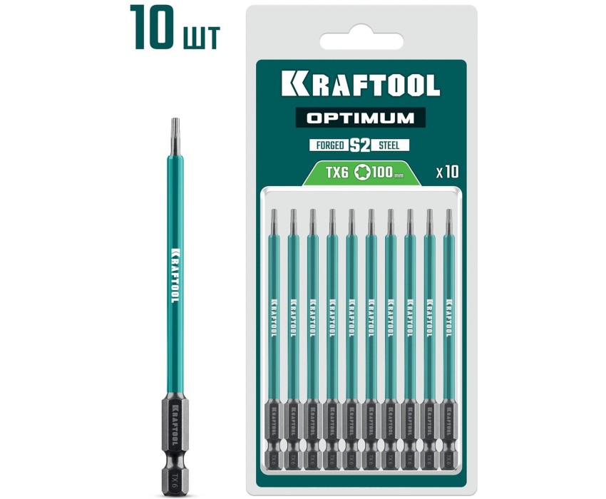 KRAFTOOL OPTIMUM TX 6, 100 мм, 10 шт, биты (26126-6-100-S10)