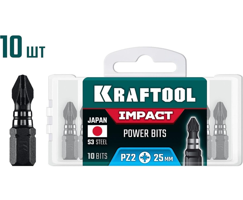 KRAFTOOL Impact PZ 2, 25 мм, 10 шт, ударные биты (26193-2-25-S10)