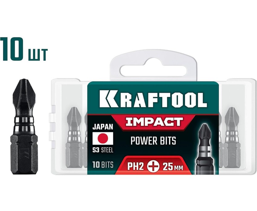 KRAFTOOL Impact PH 2, 25 мм, 10 шт, ударные биты (26191-2-25-S10)