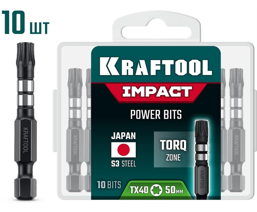 KRAFTOOL Impact TX 40, 50 мм, 10 шт, ударные биты (26195-40-50-S10)