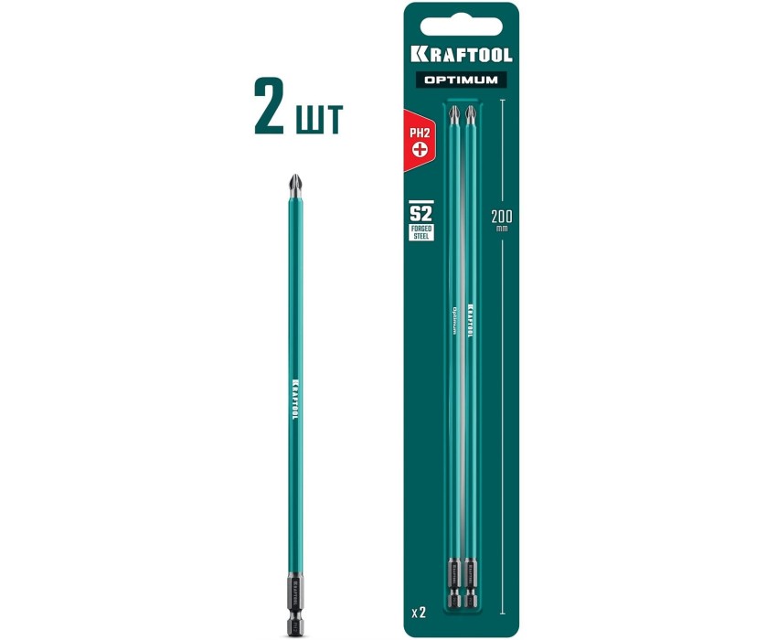 KRAFTOOL OPTIMUM PH 2, 200 мм, 2 шт, биты (26122-2-200-2)