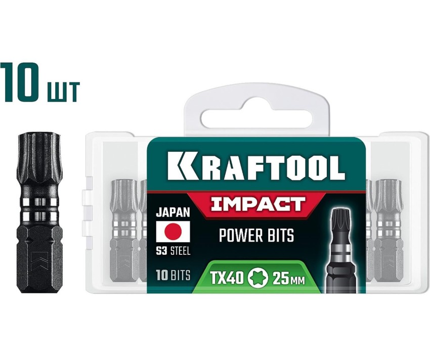 KRAFTOOL Impact TX 40, 25 мм, 10 шт, ударные биты (26195-40-25-S10)