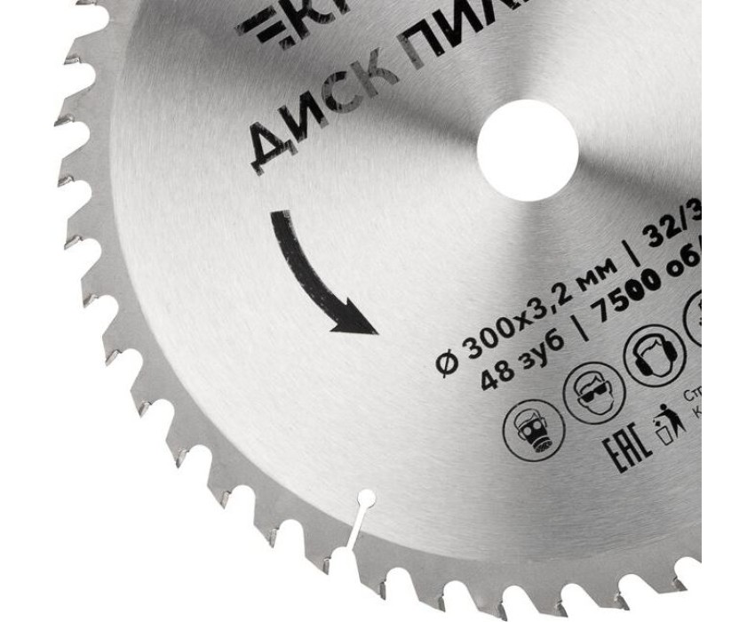 Диск предназначен для пиления древесины мягких и твердых пород, ДСП, МДФ, фанеры, также допускается распил алюминия и пластика. Применяется для выпиливания пазов вдоль оси вращения диска. Используется совместно с дисковыми (торцовочными или циркулярными) пилами. Зубья изделия оснащены износостойкими твердосплавными напайками и имеют специальную заточку, что обеспечивает качественный распил заготовок. Корпус диска изготовлен из высококачественной закаленной инструментальной стали и устойчив к деформациям. Соединение пластин и зубьев имеют прочную структуру: используется комбинированный припой с высоким содержанием серебра. Оптимальная скорость вращения: 7500 об/мин Диаметр: 300 мм Диаметр посадочного отверстия: 32/30 мм Количество зубьев: 48 Ширина пропила: 3,2 мм Тип зубьев: переменный наклон