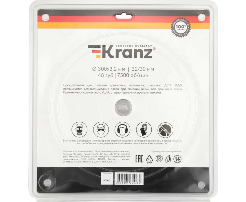 KRANZ (KR-92-0133) Диск пильный 300 мм х 48 зуб х 32/30 мм