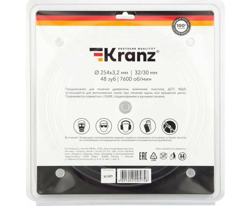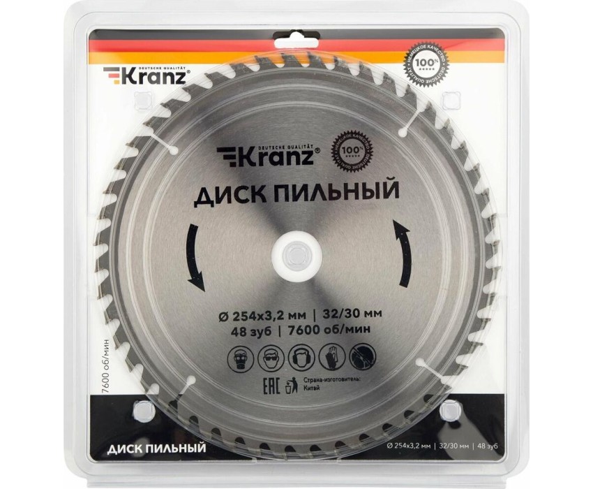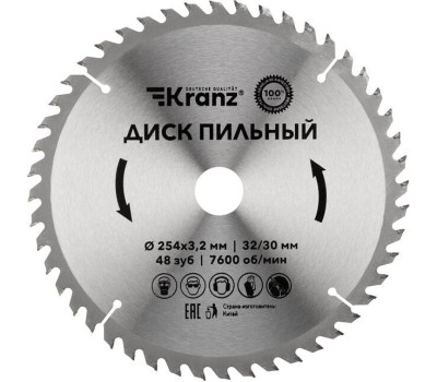 KRANZ (KR-92-0130) Диск пильный 254 мм х 48 зуб х 32/30 мм