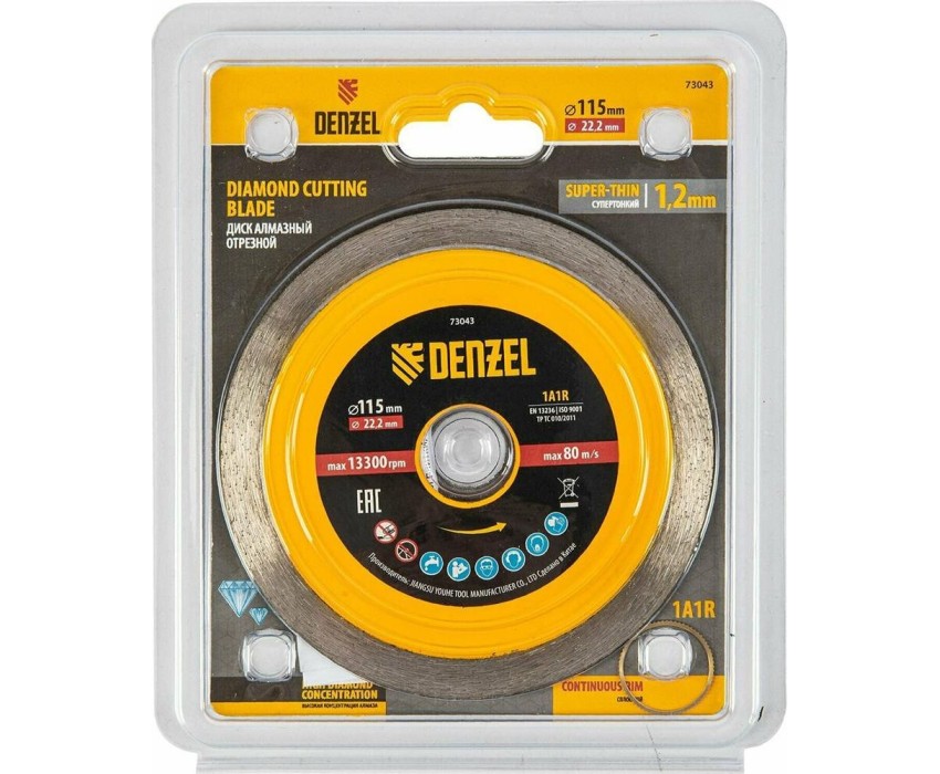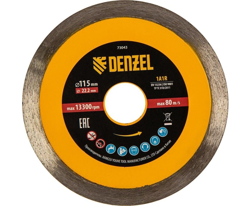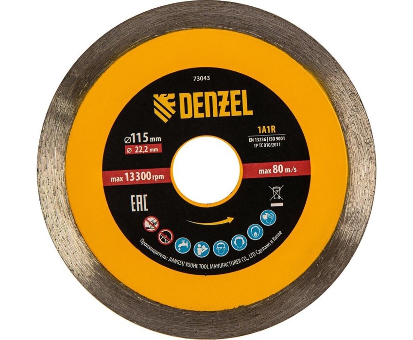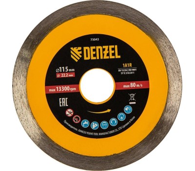 Алмазный диск DENZEL Диск алмазный отрезной 115 х 22,2 мм, сплошной, супертонкий, горячий пресс, мокрое резание 73043