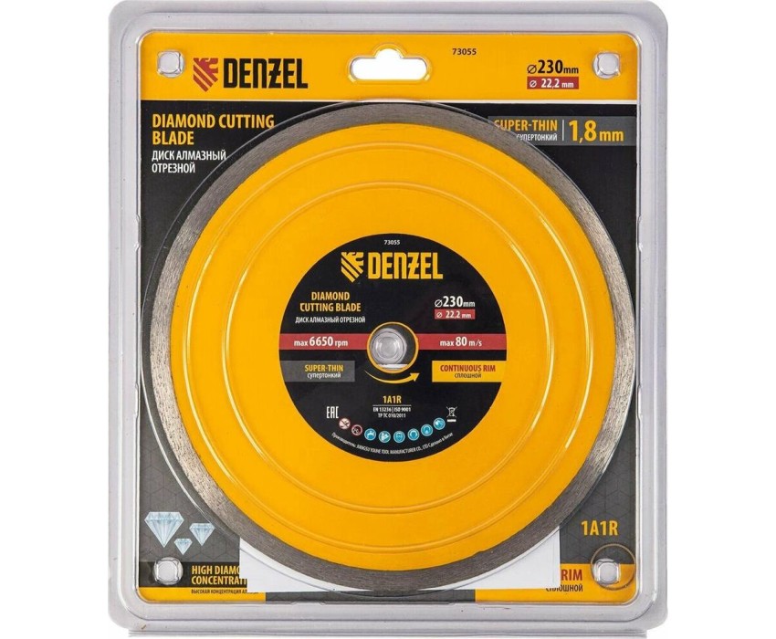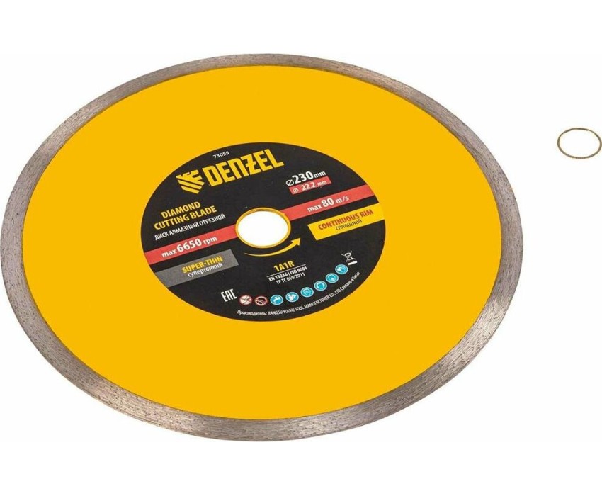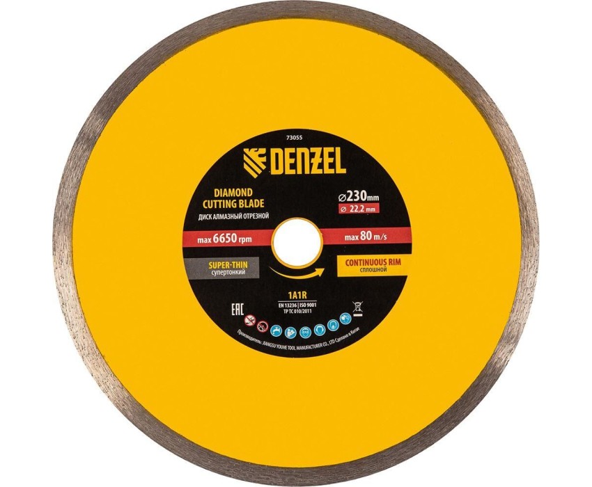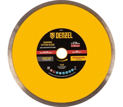 Алмазный диск DENZEL Диск алмазный отрезной 230 х 22,2 мм, сплошной, супертонкий, горячий пресс, мокрое резание 73055