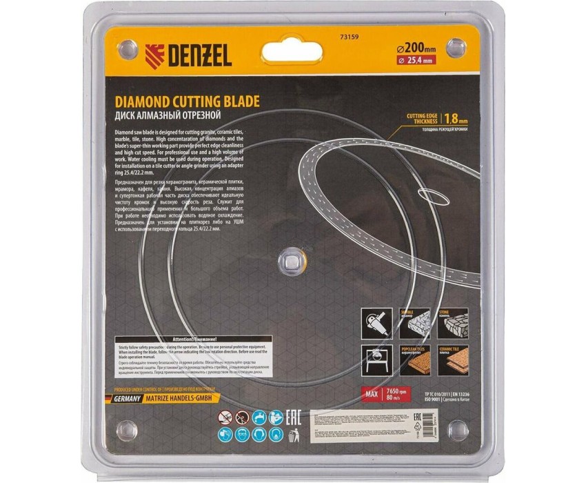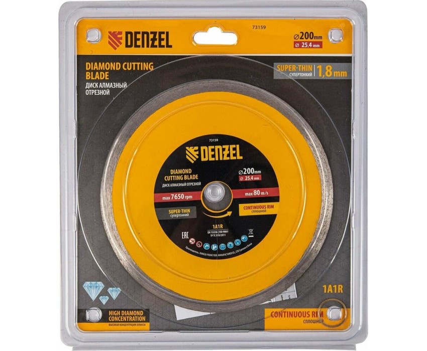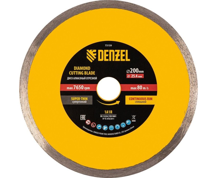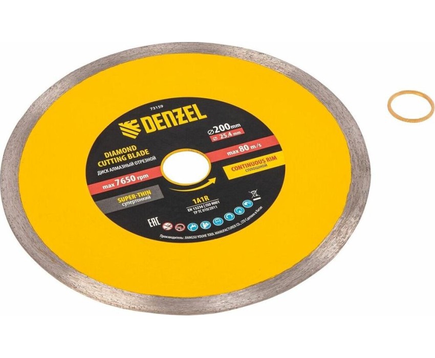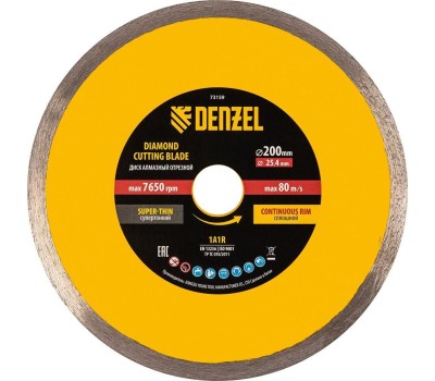 Алмазный диск DENZEL Диск алмазный сплошной, супертонкий, 200 х 25,4 мм, горячее прессование, мокрое резание 73159