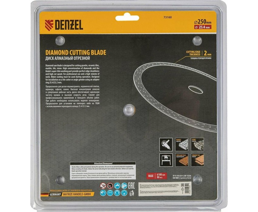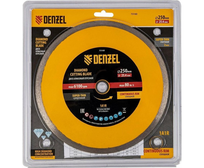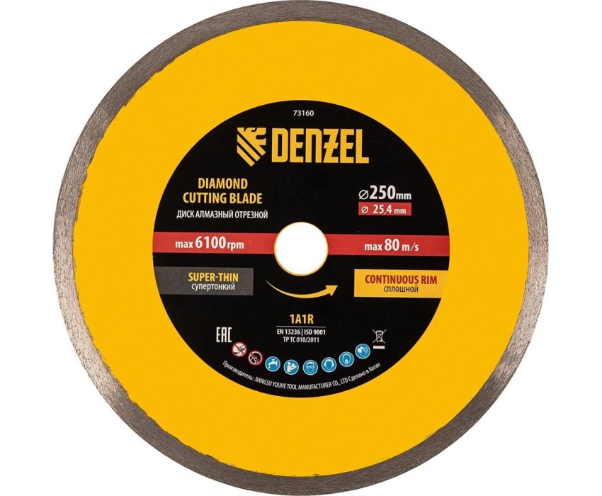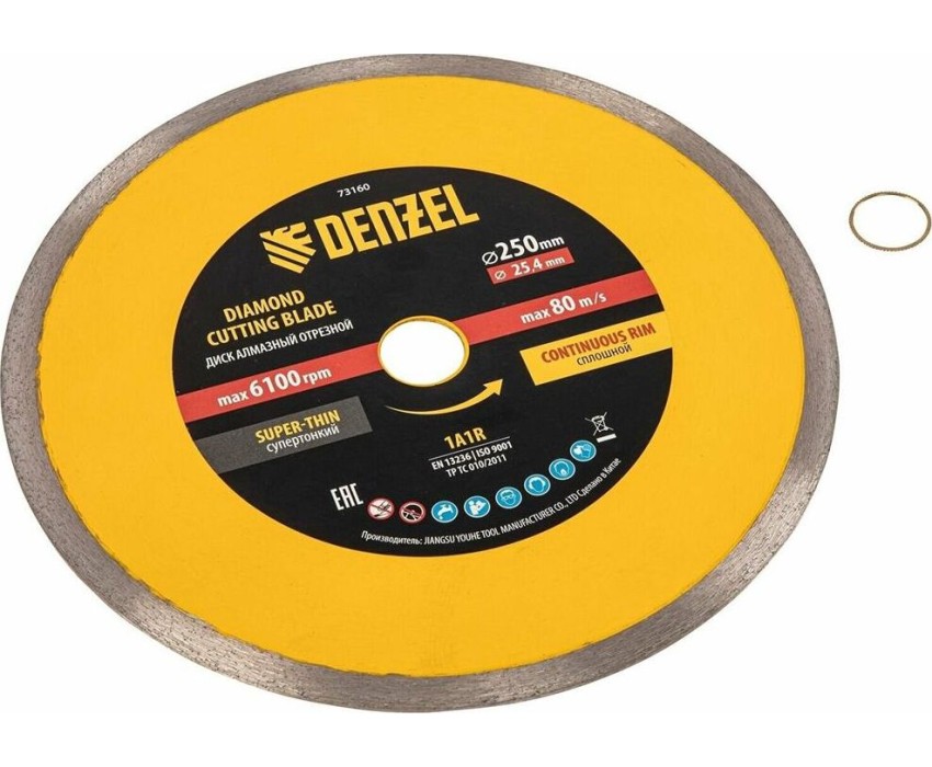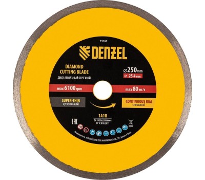 Алмазный диск DENZEL Диск алмазный сплошной, супертонкий, 250 х 25,4 мм, горячее прессование, мокрое резание 73160