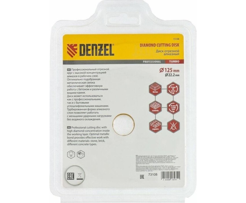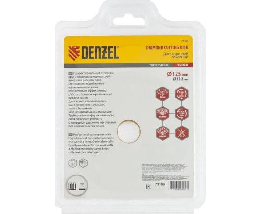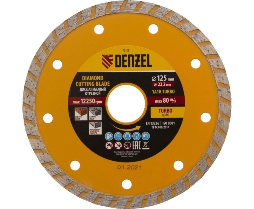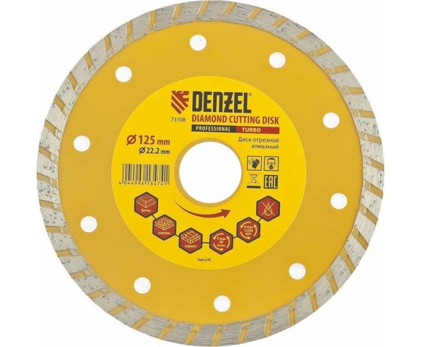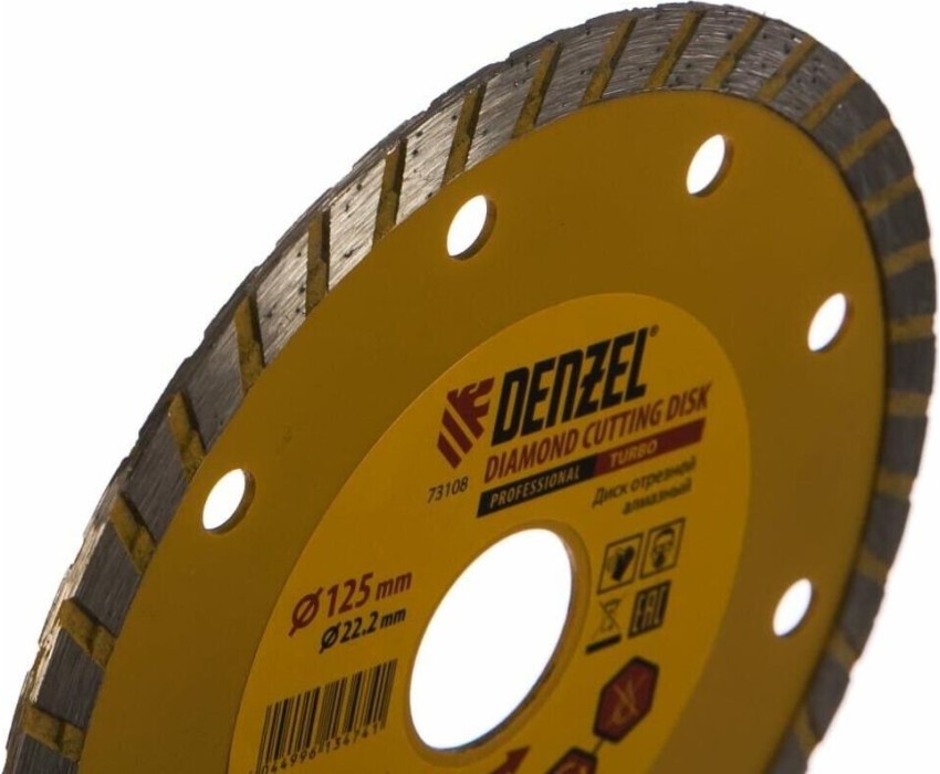 Отрезной алмазный диск DENZEL Диск алмазный, отрезной Turbo, 125 х 22.2 мм, сухая резка Denzel 73108