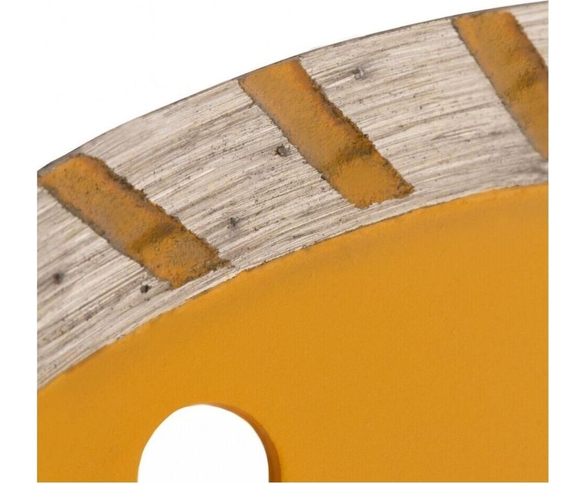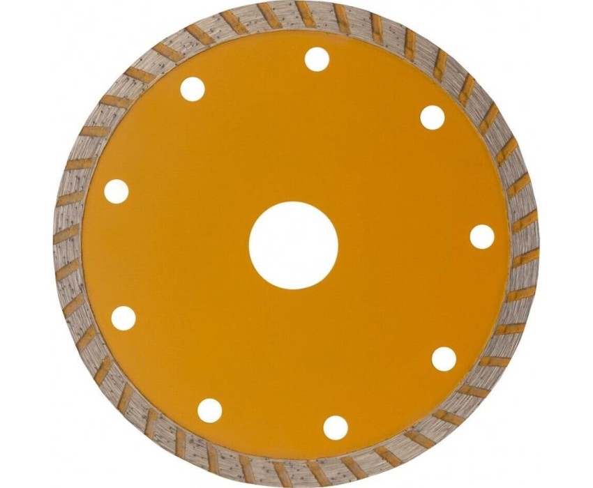 Отрезной алмазный диск Denzel Турбо ф125 х 22,2 мм 73108 рассчитан на сухое резание камня, кирпича, свежего и затвердевшего бетона, железобетона. Он используется в качестве оснастки на УШМ с посадочным отверстием 22,2 мм при проведении бытовых и профессиональных отрезных работ. Турбо диск режет снижает ударную нагрузку при резании материалов и не требует водяного охлаждения.ПреимуществаКачественная металлическая связка обеспечивает эффективность работы с плотными материалами, т.к. устойчивая к высоким температурам.Режущий слой шириной 7 мм с высокой концентрацией алмазов позволяет увеличить скорость реза и износостойкость диска.Диск изготовлен по технологии холодного прессования, поэтому отличается хорошими режущими свойствами.