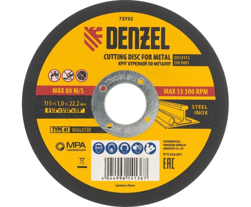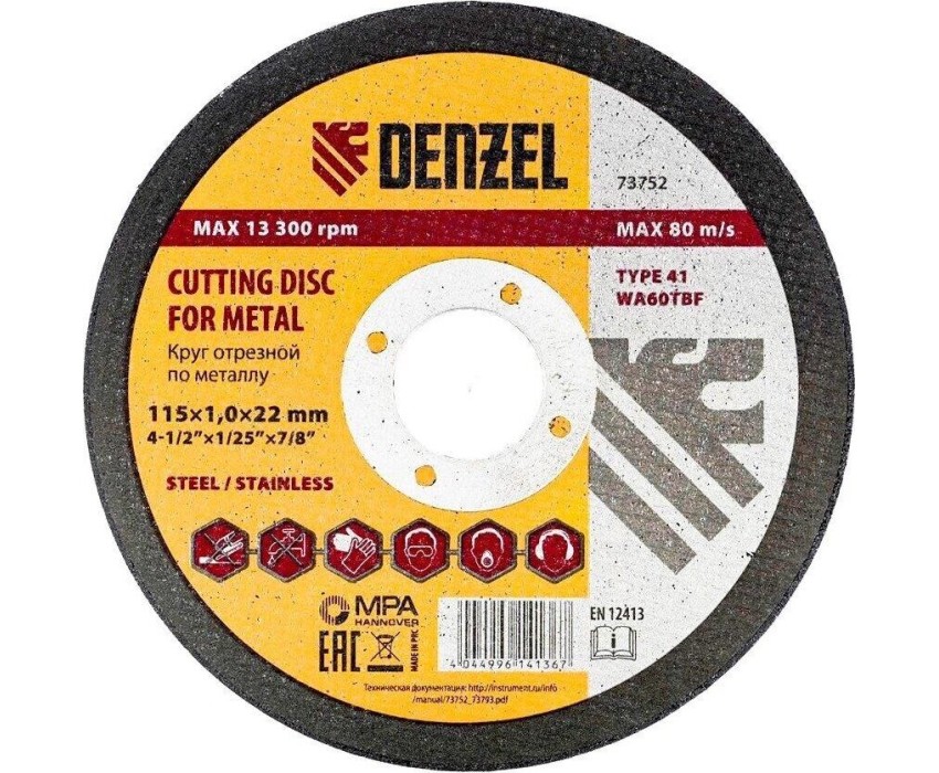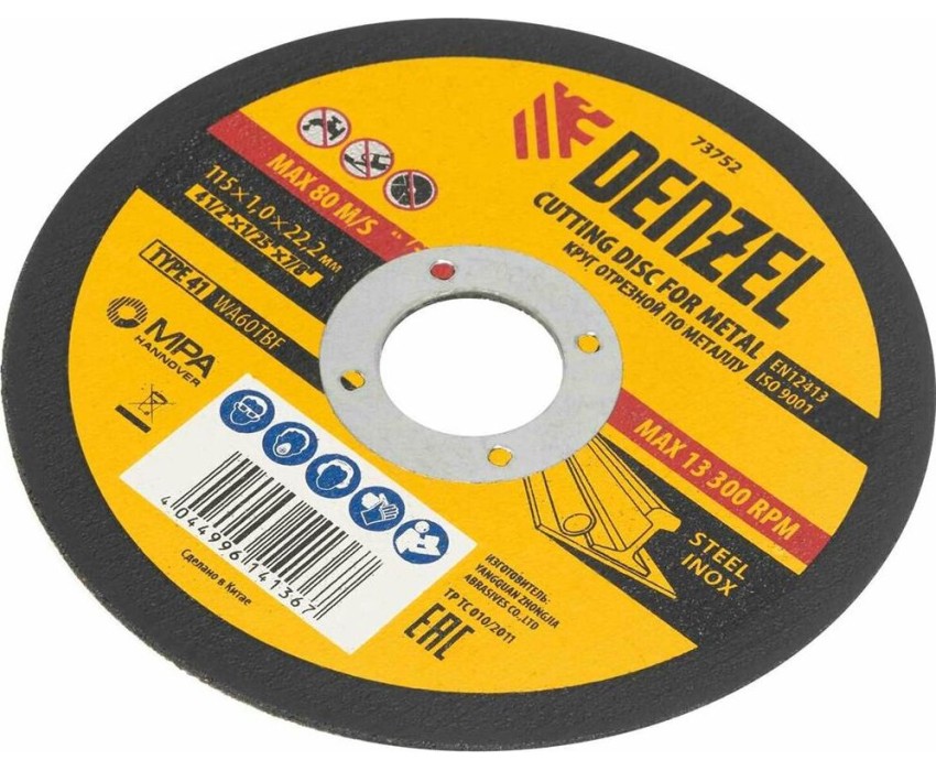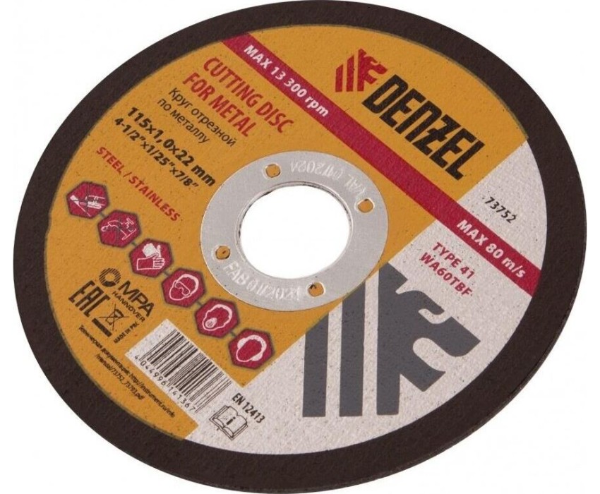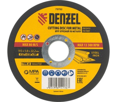 Отрезной круг DENZEL Круг отрезной по металлу, 115 х 1 х 22.2 мм Denzel 73752