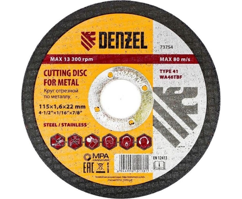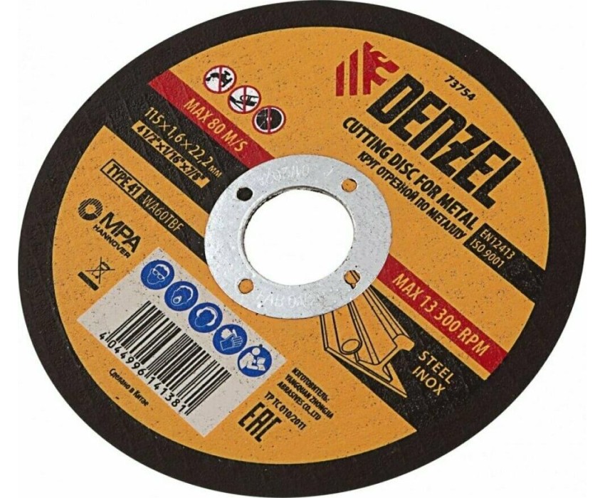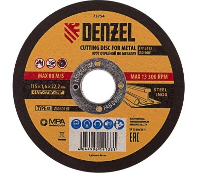 Отрезной круг DENZEL Круг отрезной по металлу, 115 х 1.6 х 22.2 мм Denzel 73754