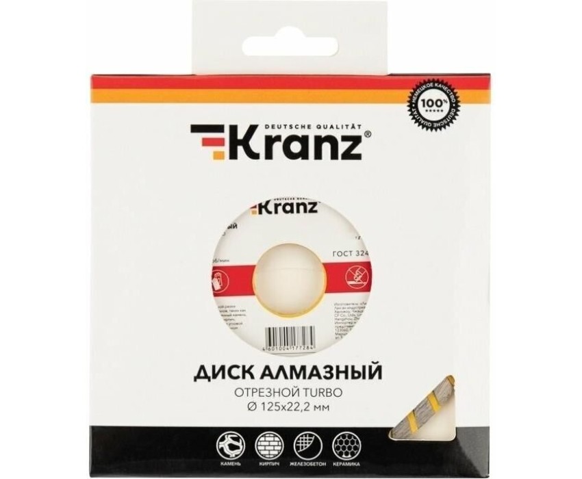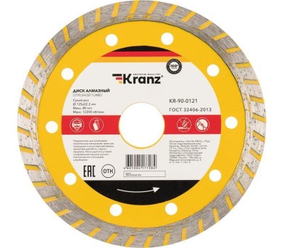 Диск алмазный KRANZ (KR-90-0121) Диск алмазный отрезной Turbo 125x22,2x2,2x10мм