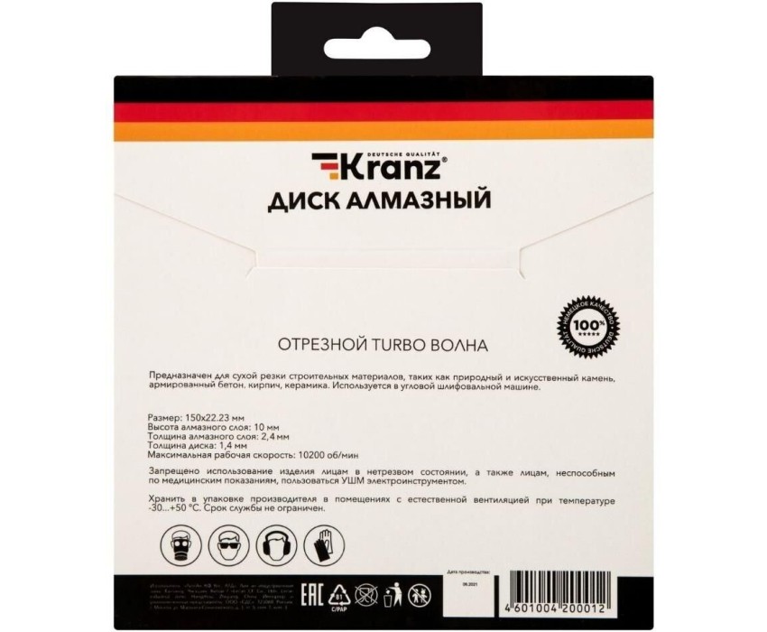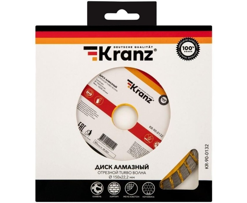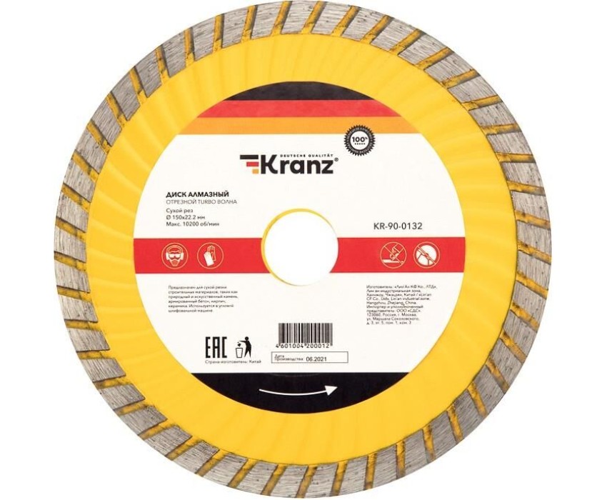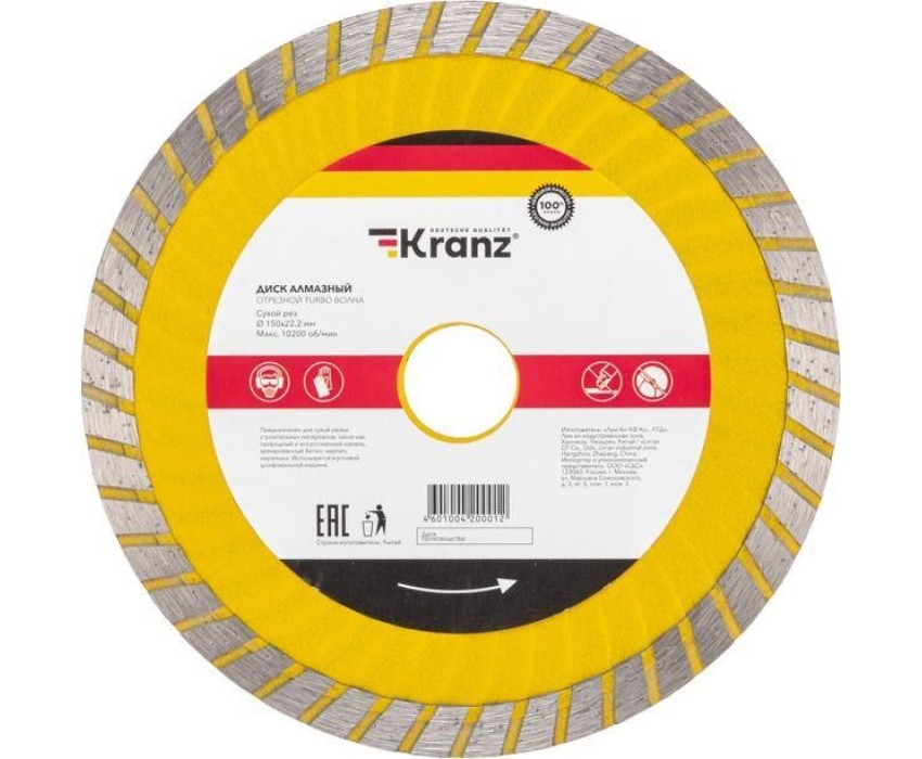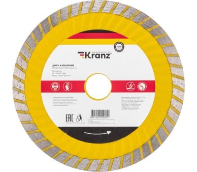Диск алмазный KRANZ (KR-90-0132) Диск алмазный отрезной Turbo волна 150x22,2x2,2x10мм