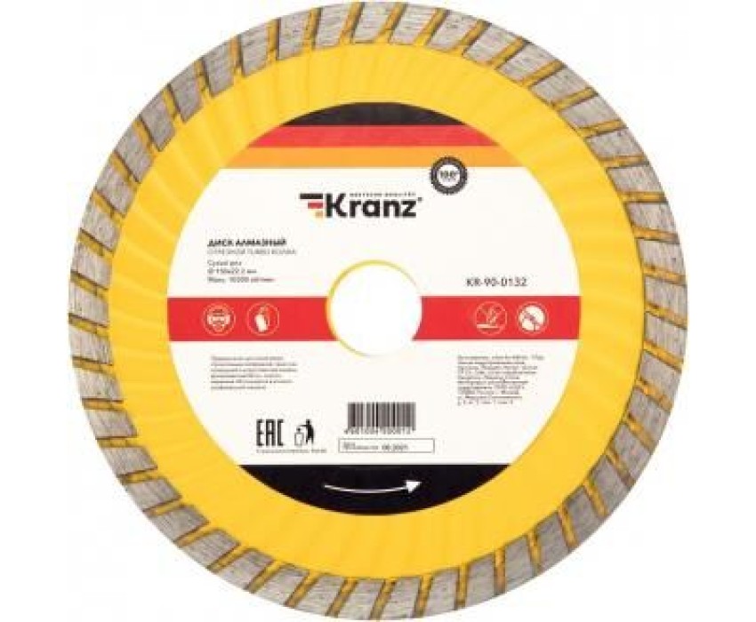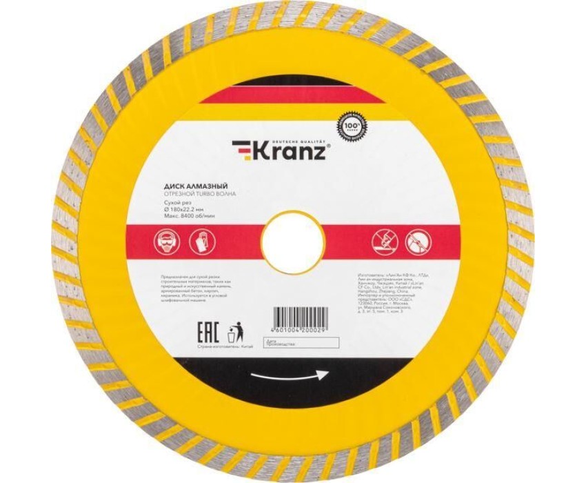 Диск алмазный KRANZ (KR-90-0133) Диск алмазный отрезной Turbo волна 180x22,2x2,2x10мм