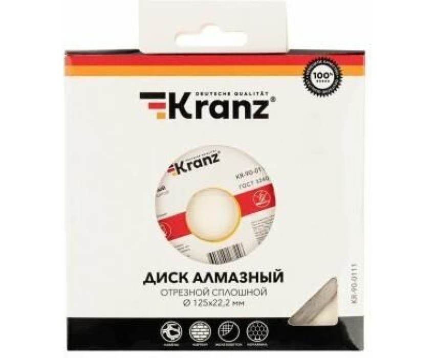 Диск алмазный KRANZ (KR-90-0111) Диск алмазный отрезной сплошной 125x22,2x1,8x10мм