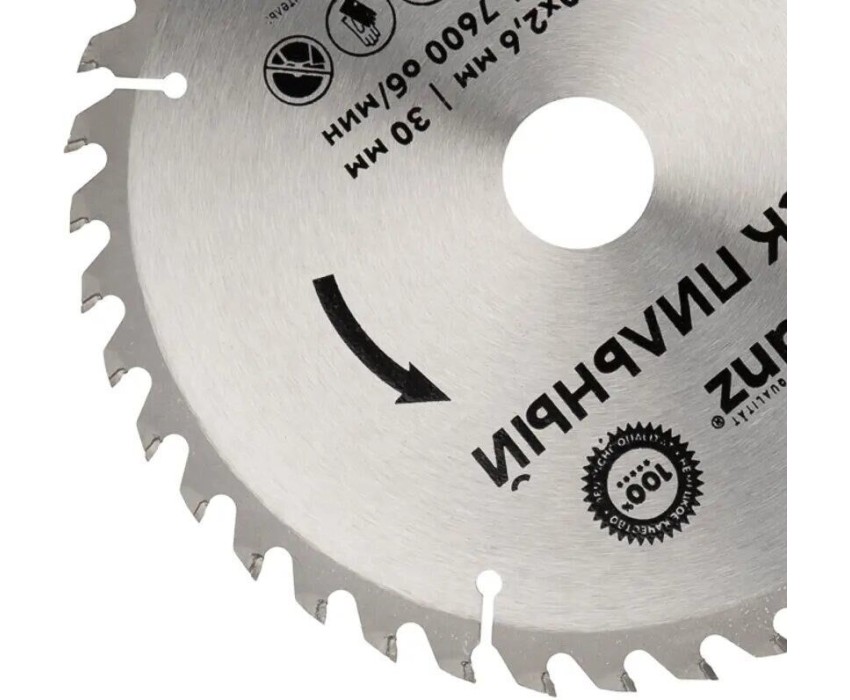 Пильный диск предназначен для пиления древесины различных пород, ДСП, МДФ, допускается распил алюминия и пластика. Данный диск рассчитан на выполнение работ, где важно сочетание скорости и качества распила. Корпус диска изготовлен из высококачественной закаленной инструментальной стали, поэтому устойчив к деформациям. Благодаря твердосплавным напайкам из карбида вольфрама ВК8 твердостью 89-92 HRC и высококачественной лазерной заточке, распил заготовок получается более эффективным. Надежную фиксацию напаек к зубьям обеспечивает припой с высоким содержанием серебра. Компенсационные пазы минимизируют деформацию диска при перегреве, благодаря чему диск дольше сохраняет свои рабочие свойства. Используется совместно с торцовочными и циркулярными пилами с посадочным местом соответствующего диаметра. Перед использованием оснастки необходимо обратить внимание на допустимое количество оборотов в минуту.