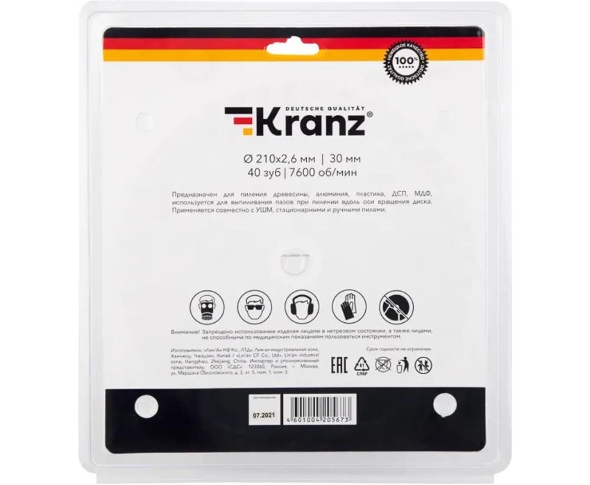 Диск пильный KRANZ (KR-92-0122) Диск пильный 210 мм х 40 зуб х 30 мм