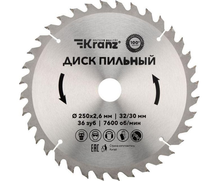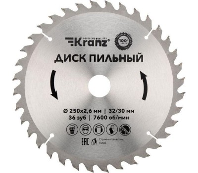 Диск пильный KRANZ (KR-92-0127) Диск пильный 250 мм х 36 зуб х 32/30 мм