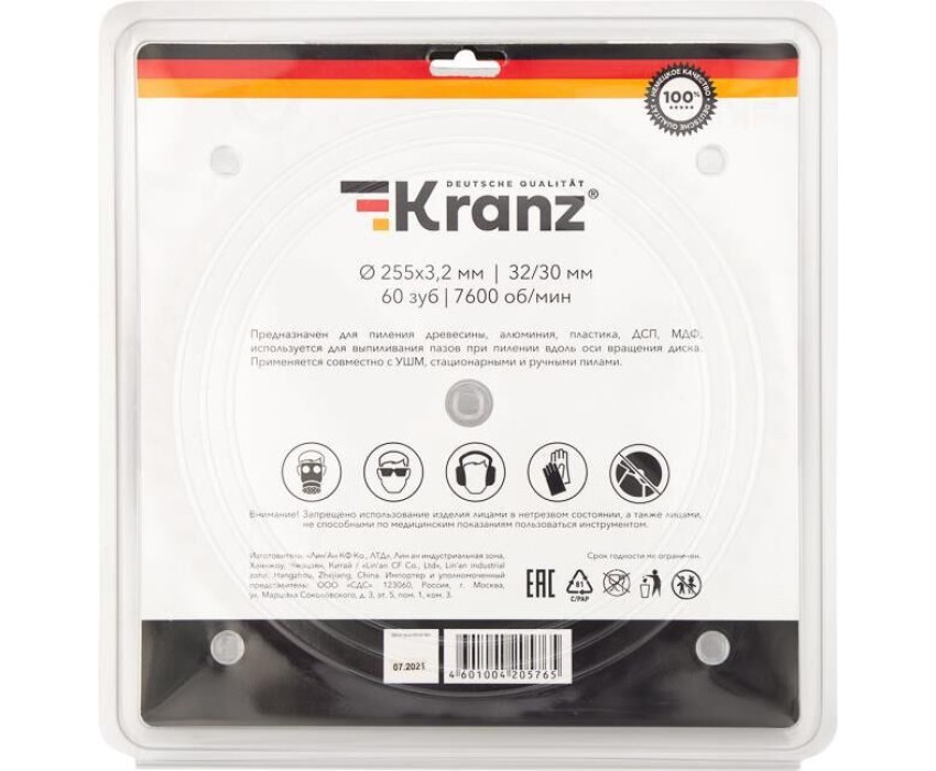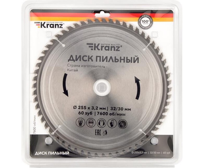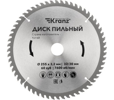 Диск пильный KRANZ (KR-92-0131) Диск пильный 255 мм х 60 зуб х 32/30 мм