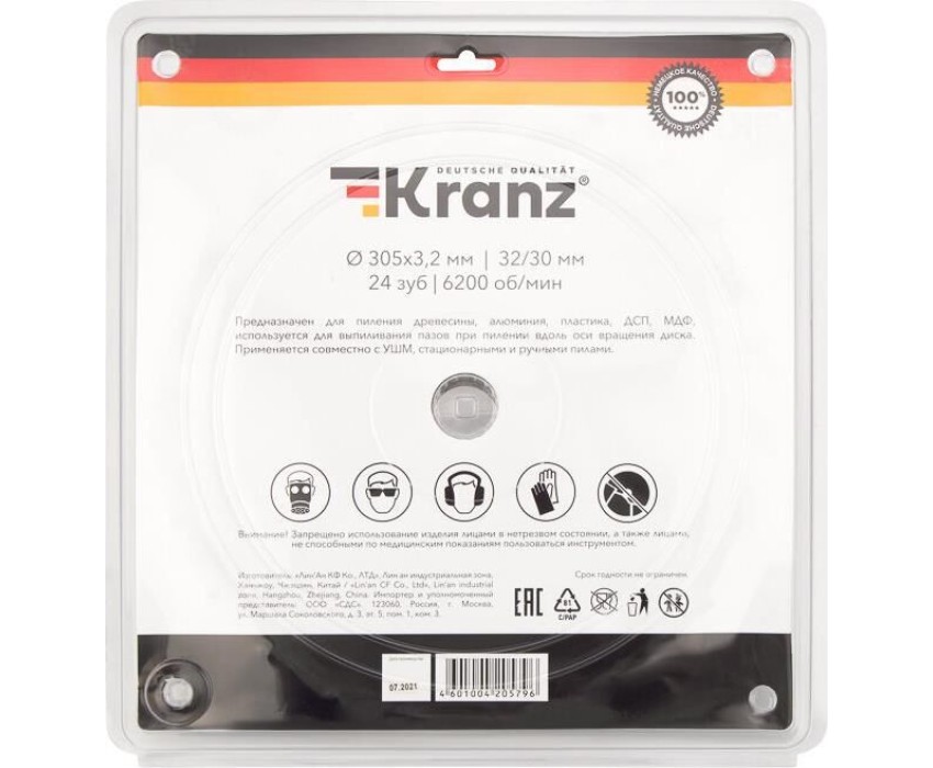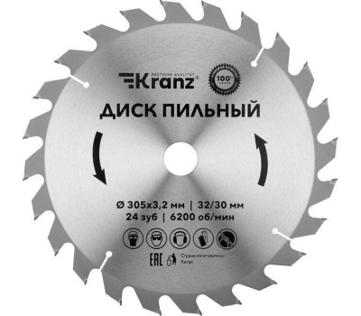 Диск пильный KRANZ (KR-92-0134) Диск пильный 305 мм х 24 зуб х 32/30 мм