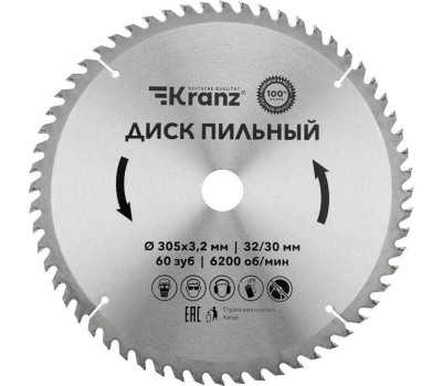 Диск пильный KRANZ (KR-92-0135) Диск пильный 305 мм х 60 зуб х 32/30 мм