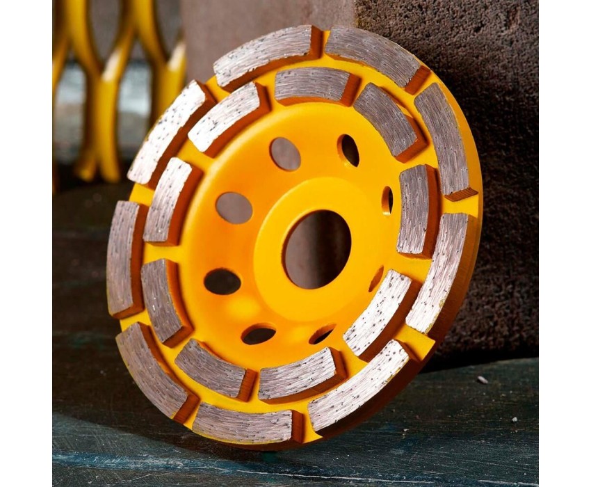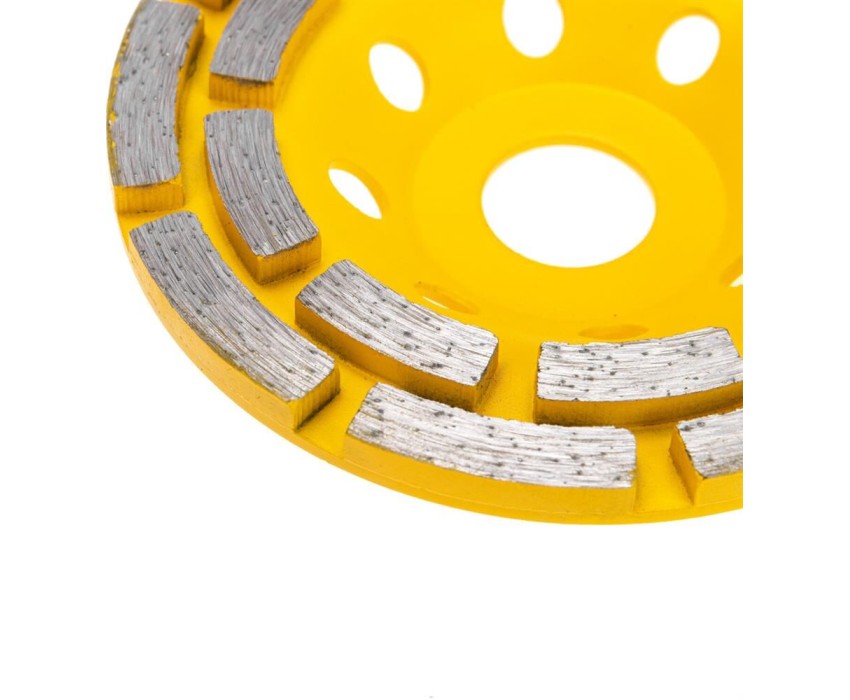 Чашка алмазная KRANZ используется совместно с угловыми шлифовальными машинами. Применяется для зачистки, выравнивания, снятия краски и шлифования поверхностей из бетонных материалов, гранита, природного и искусственного камня. Наличие двух рядов алмазов на рабочей поверхности ускоряет процесс шлифовки и повышает производительность. Инструмент отличается высоким длительным рабочим ресурсом. Не требует водяного охлаждения во время работ.