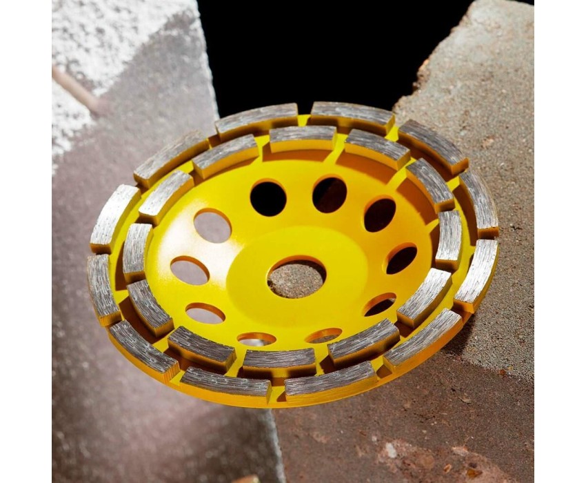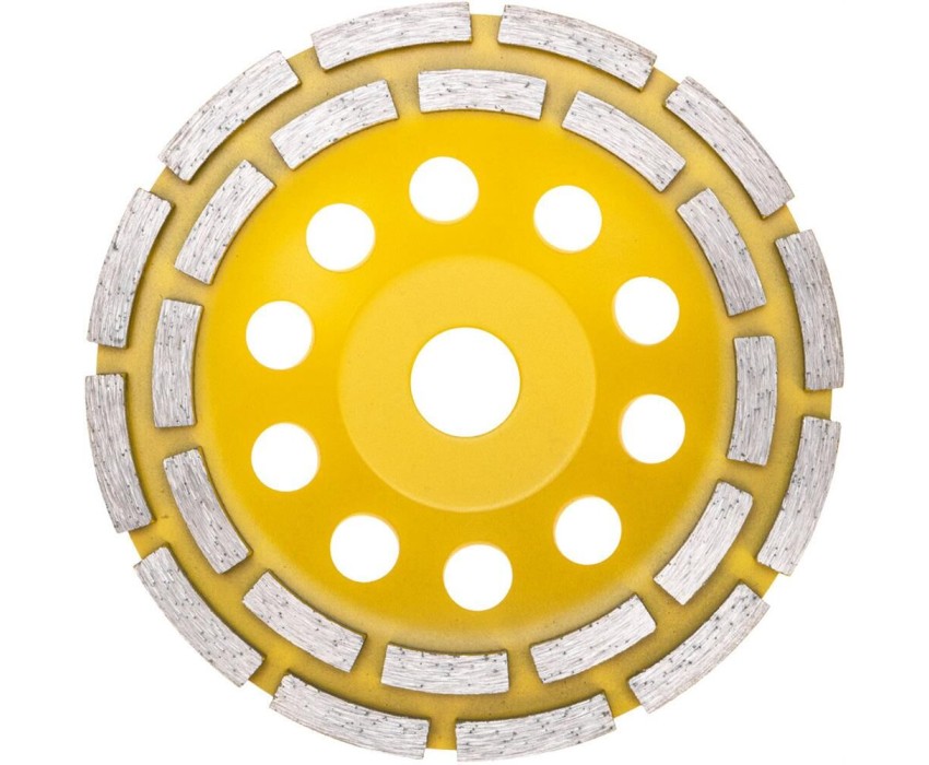 Чашка алмазная KRANZ используется совместно с угловыми шлифовальными машинами. Применяется для зачистки, выравнивания, снятия краски и шлифования поверхностей из бетонных материалов, гранита, природного и искусственного камня. Наличие двух рядов алмазов на рабочей поверхности ускоряет процесс шлифовки и повышает производительность. Инструмент отличается высоким длительным рабочим ресурсом. Не требует водяного охлаждения во время работ.