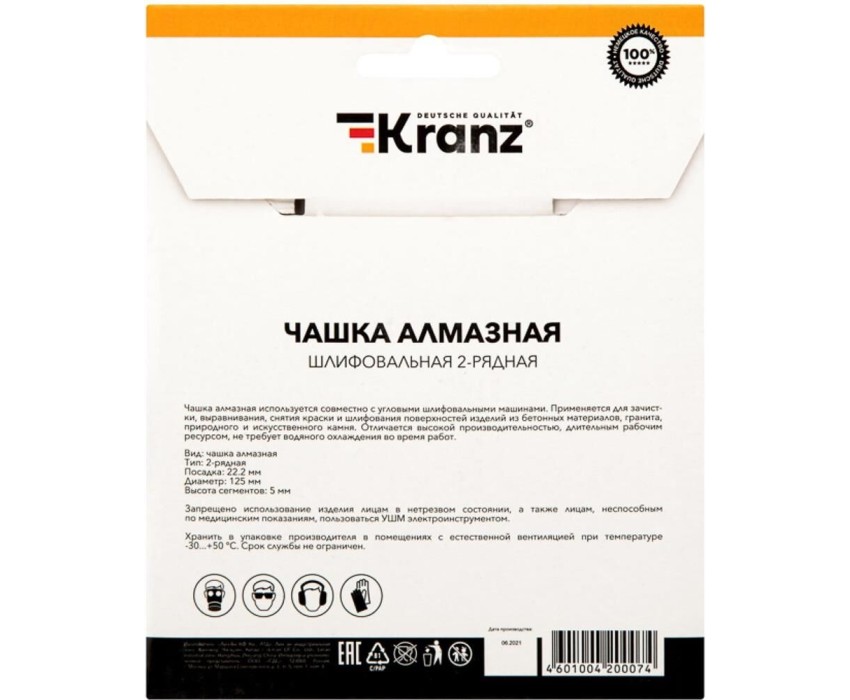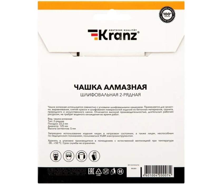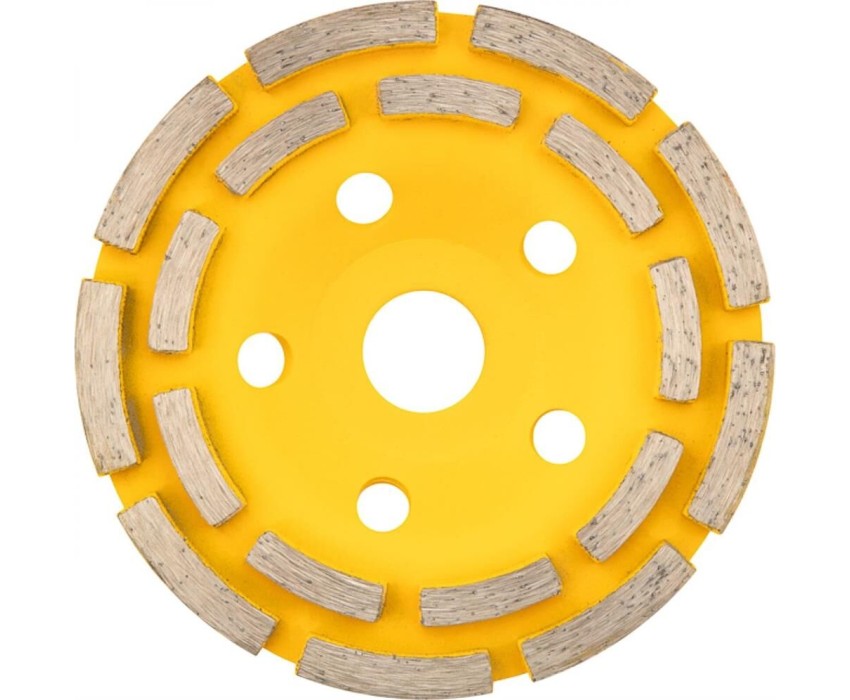 Чашка алмазная KRANZ используется совместно с угловыми шлифовальными машинами. Применяется для зачистки, выравнивания, снятия краски и шлифования поверхностей из бетонных материалов, гранита, природного и искусственного камня. Наличие двух рядов алмазов на рабочей поверхности значительно ускоряет процесс шлифовки и повышает производительность. Инструмент отличается длительным рабочим ресурсом. Не требует водяного охлаждения во время работ.