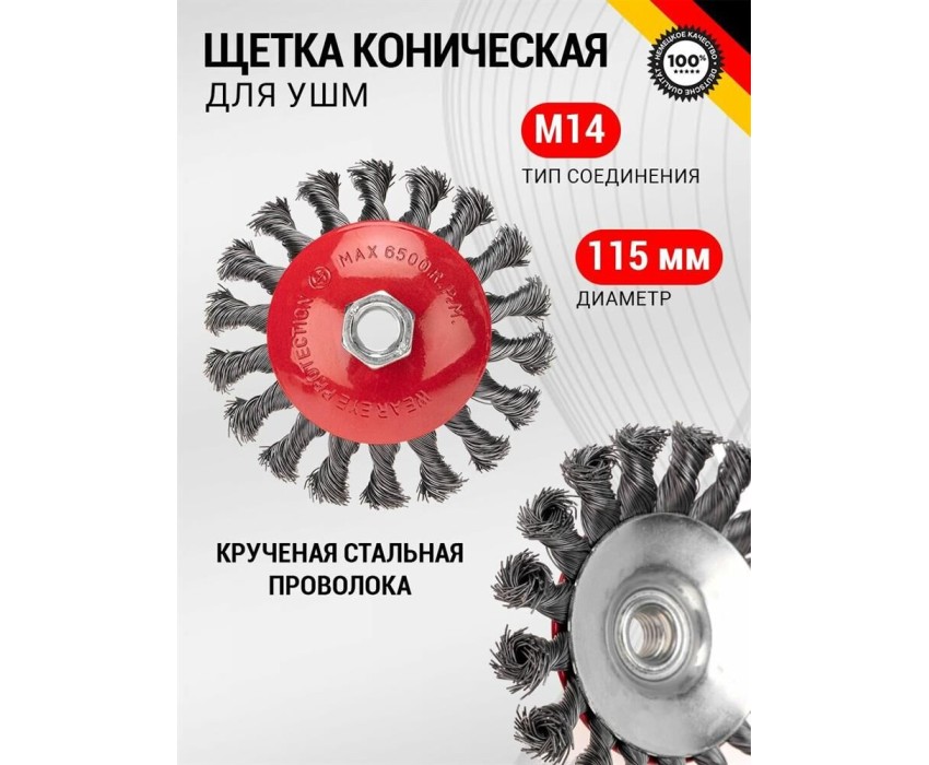 Щетка коническая KRANZ (KR-91-1202) Щетка коническая для УШМ, крученая стальная проволока, 115мм, М14