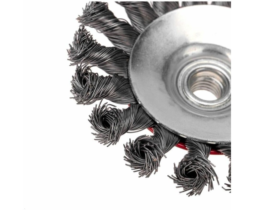Коническая щетка KRANZ применяется в составе угловой шлифовальной машины с целью очистки разнообразных металлических деталей и заготовок от слоя краски, лака, заусенцев, ржавчины, окалины или нагара. Подходит для обработки и выравнивания сварочных швов на стальных поверхностях. Прочная закаленная проволока собрана в тугие пучки с расходящимися краями. Такой тип проволоки характеризуется жесткостью, поэтому предназначен для удаления особо сложных загрязнений. Коническая форма щетки позволяет легко достигать труднодоступных участков и обрабатывать поверхности различных форм и размеров. Инструмент подходит для выполнения работ, требующих значительных силовых нагрузок и продолжительного воздействия на загрязненную поверхность. Тип соединения М14 обеспечивает простоту и надежность установки на УШМ.