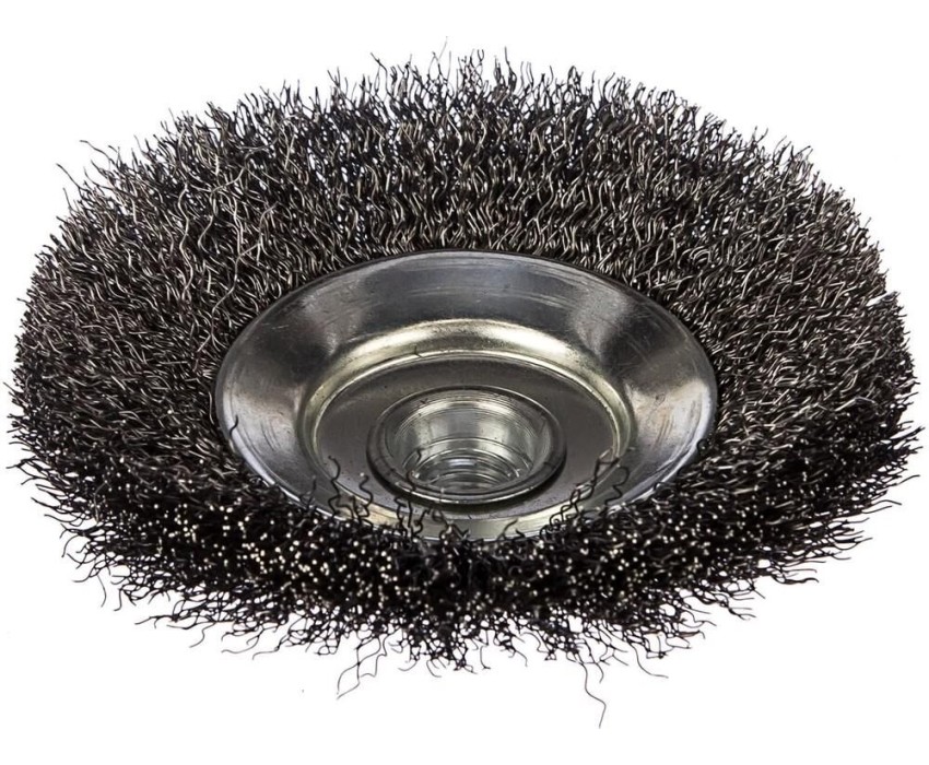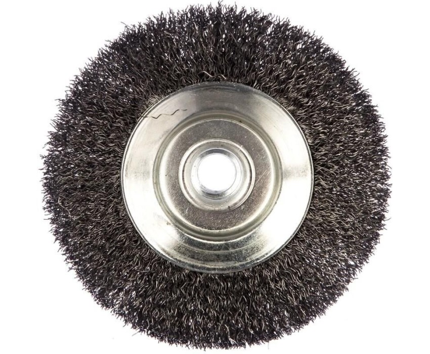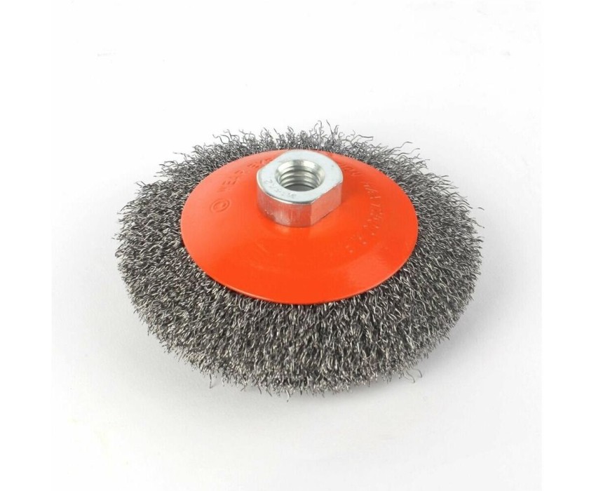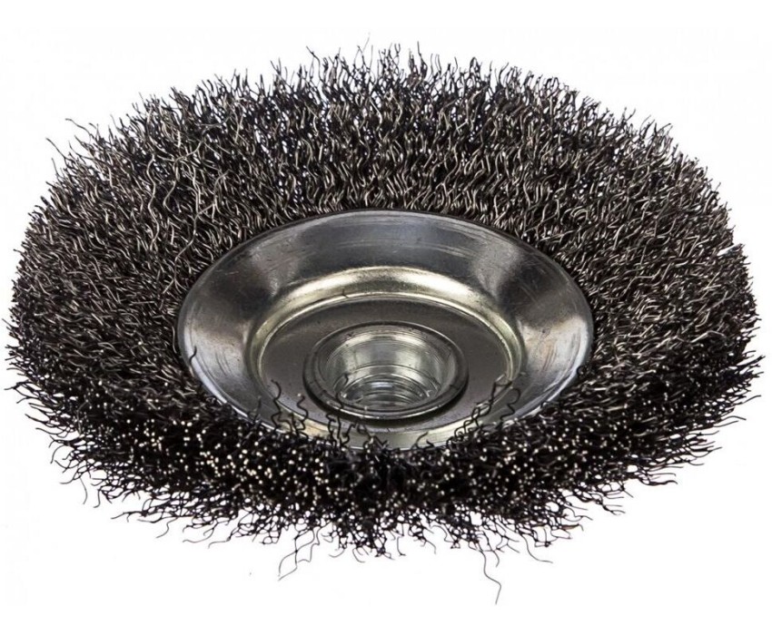 тарельчатая проволочная щетка для УШМ для снятия лака; краски; зачистки ржавчины; Наружный диаметр: 115мм; посадка: М14; стальная гофрированная проволока