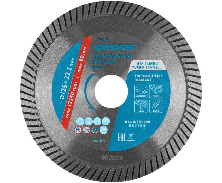 GROSS Диск алмазный, 125 х 22.2 мм, турбо, сухая резка 730297