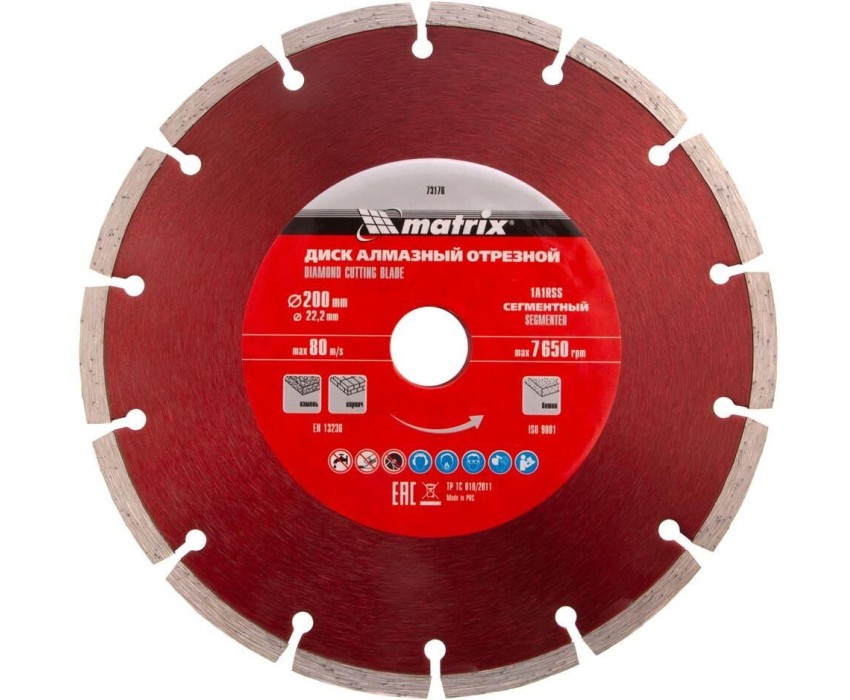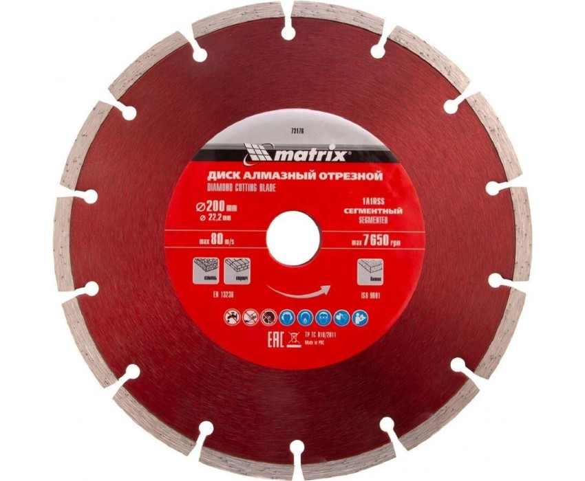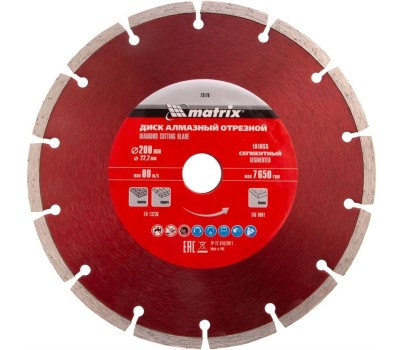 MATRIX Диск алмазный, отрезной сегментный, 200 х 22.2 мм, сухая резка Professional 73176