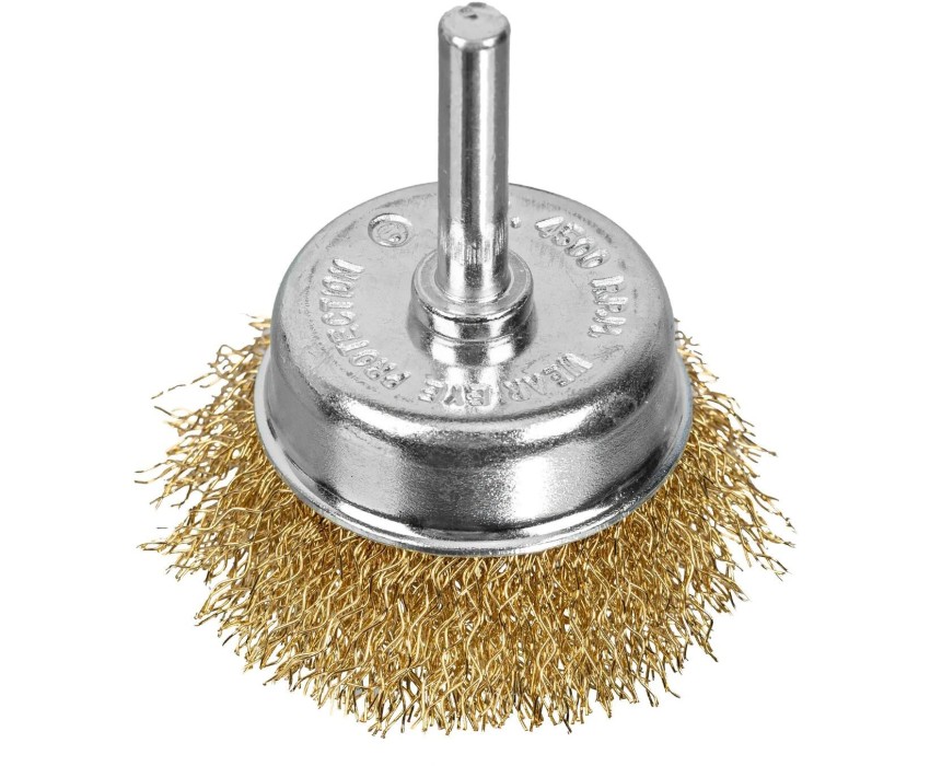 Щетка для дрели «чашка» Matrix 74475 диаметром 50 мм, со шпилькой и щетиной из латунированной витой проволоки, используется для очистки металлических, деревянных и пластиковых поверхностей от незначительных загрязнений и остатков лакокрасочных покрытий. Помогает подчеркнуть структуру материала или придать ему шероховатость. Хвостовик диаметром 6 мм устанавливается в патрон электродрели, поддерживающей скорость 4500 об/мин.