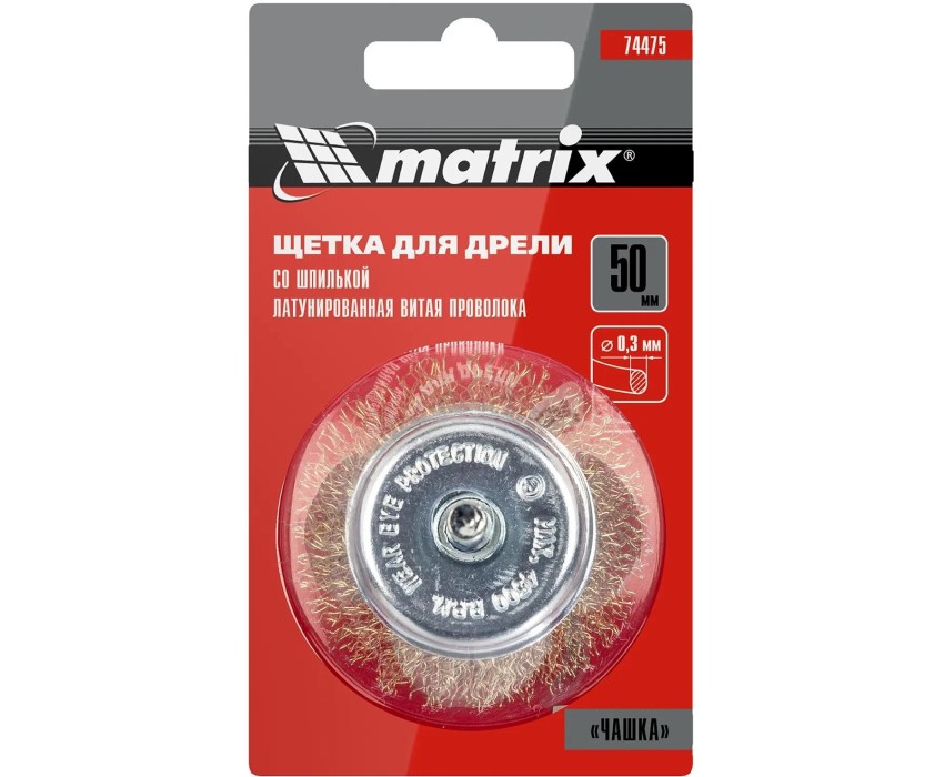 Щетка MATRIX Щетка для дрели, 50 мм, "чашка" со шпилькой, латунированная витая проволока//