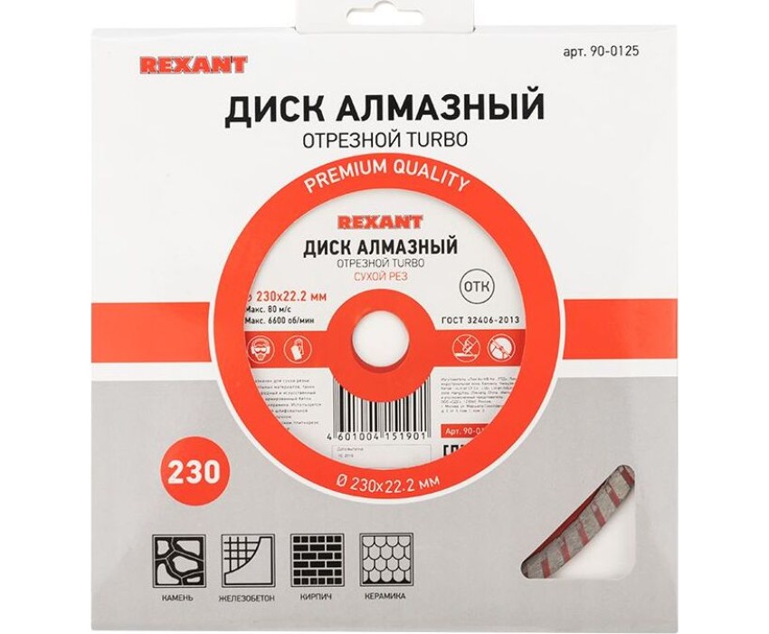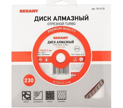 REXANT Диск алмазный отрезной Турбо 230x22,23х2,8x10мм