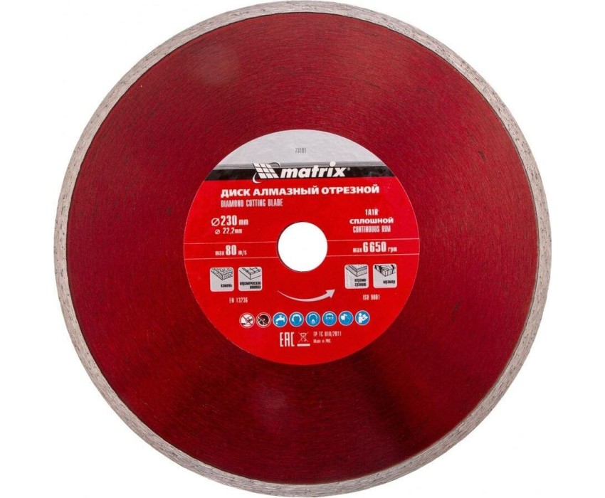 Диск алмазный MATRIX Диск алмазный, отрезной сплошной, 230 х 22.2 мм, мокрая резка Professional 73191