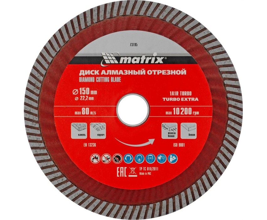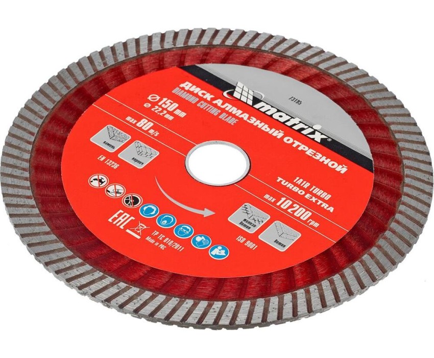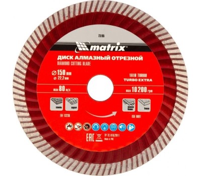 Диск алмазный MATRIX Диск алмазный, отрезной Turbo Extra, 150 х 22.2 мм, сухая резка Professional 73195