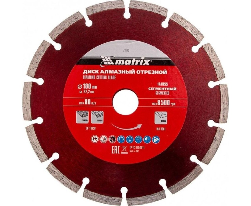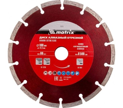 Диск алмазный MATRIX Диск алмазный, отрезной сегментный, 180 х 22.2 мм, сухая резка Professional 73175