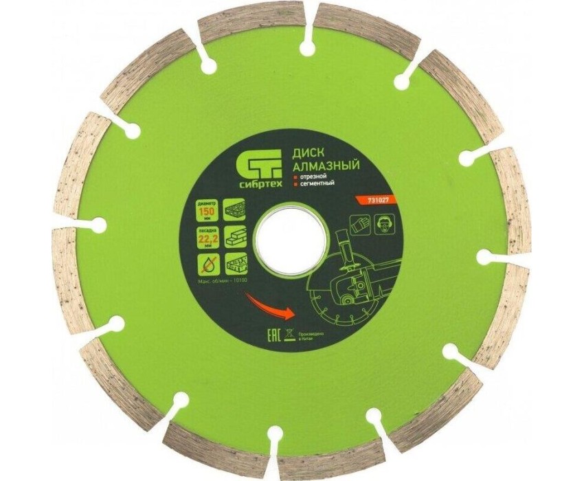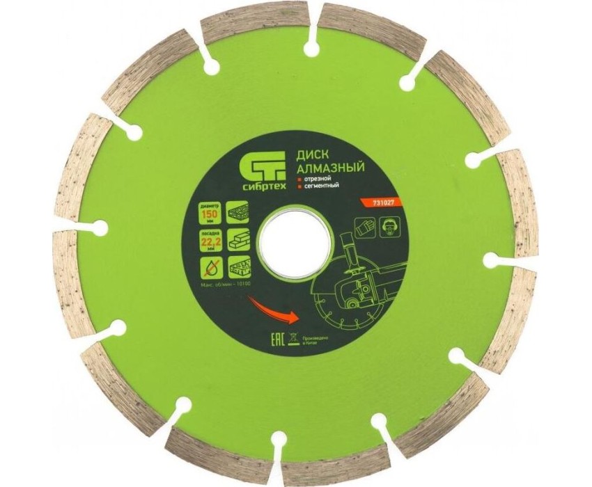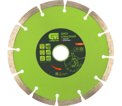 Диск алмазный СИБРТЕХ Диск алмазный, отрезной сегментный, 150 х 22.2 мм, сухая резка 731027