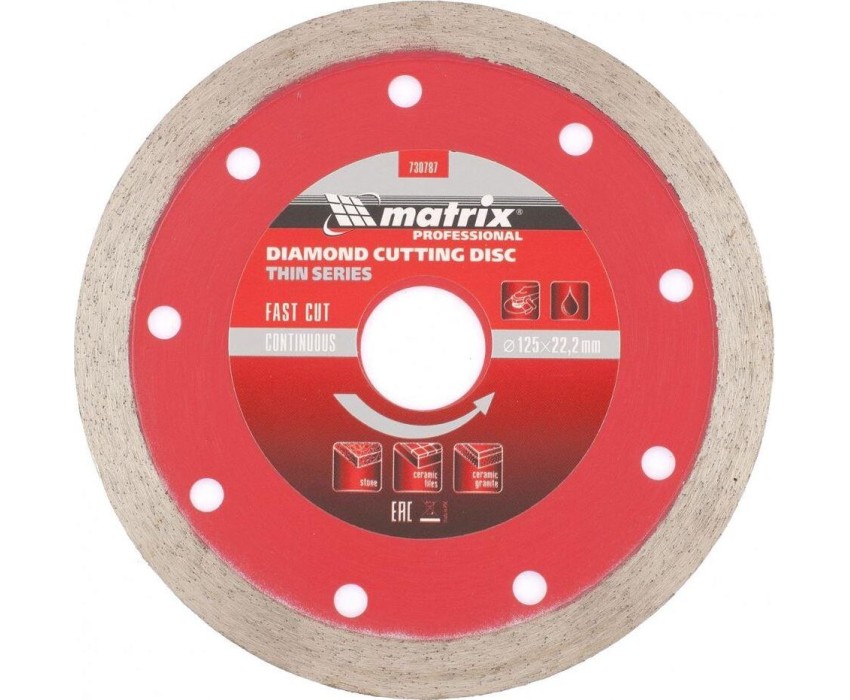 Диск алмазный MATRIX Диск алмазный, отрезной сплошной, 125 х 22.2 мм, тонкий, мокрая резка Professional 730787