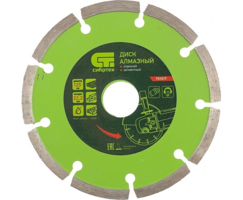 Диск алмазный СИБРТЕХ Диск алмазный, отрезной сегментный, 125 х 22.2 мм, сухая резка 731017