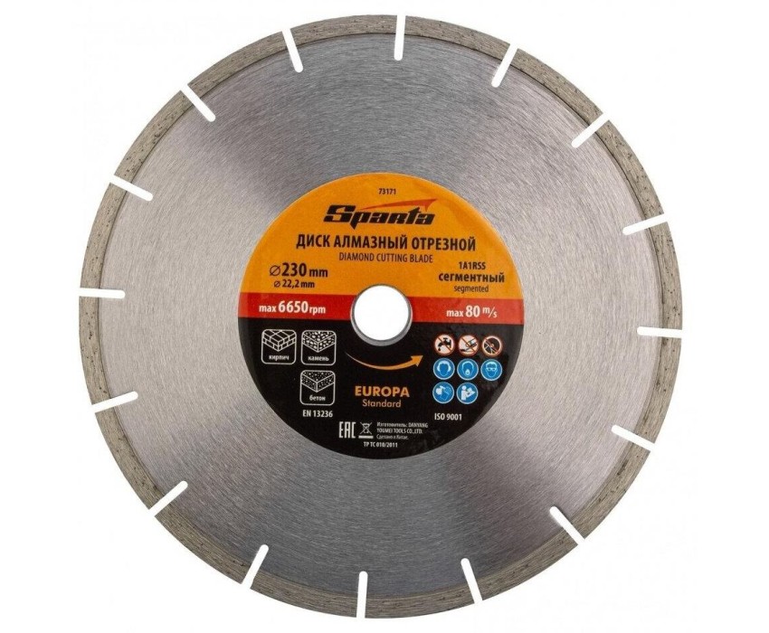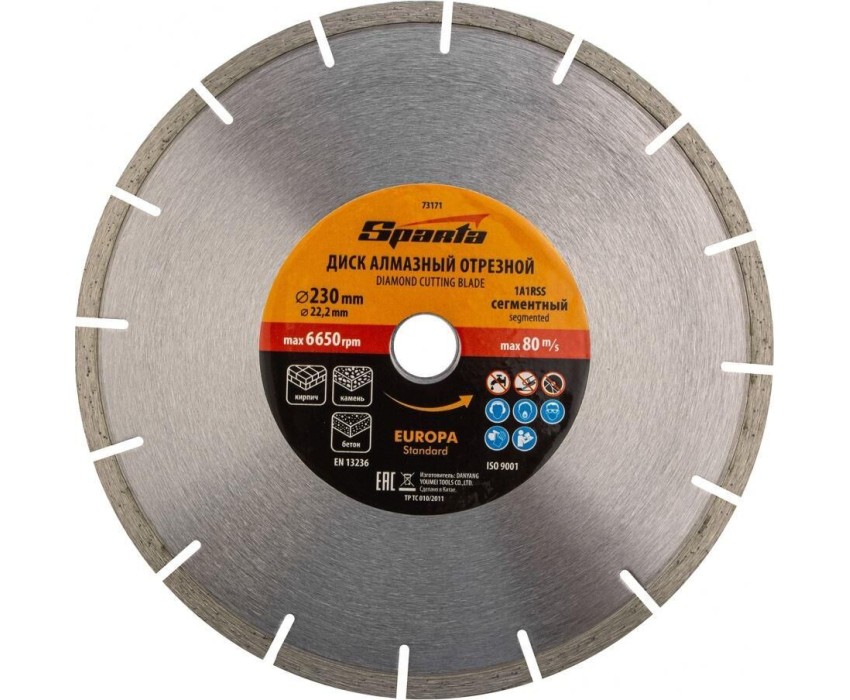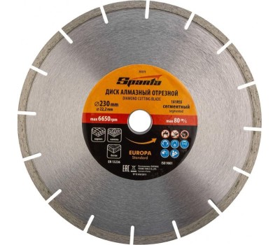 Диск алмазный SPARTA Диск алмазный, отрезной сегментный, 230 х 22.2 мм, сухая резка, EUROPA Standard 73171