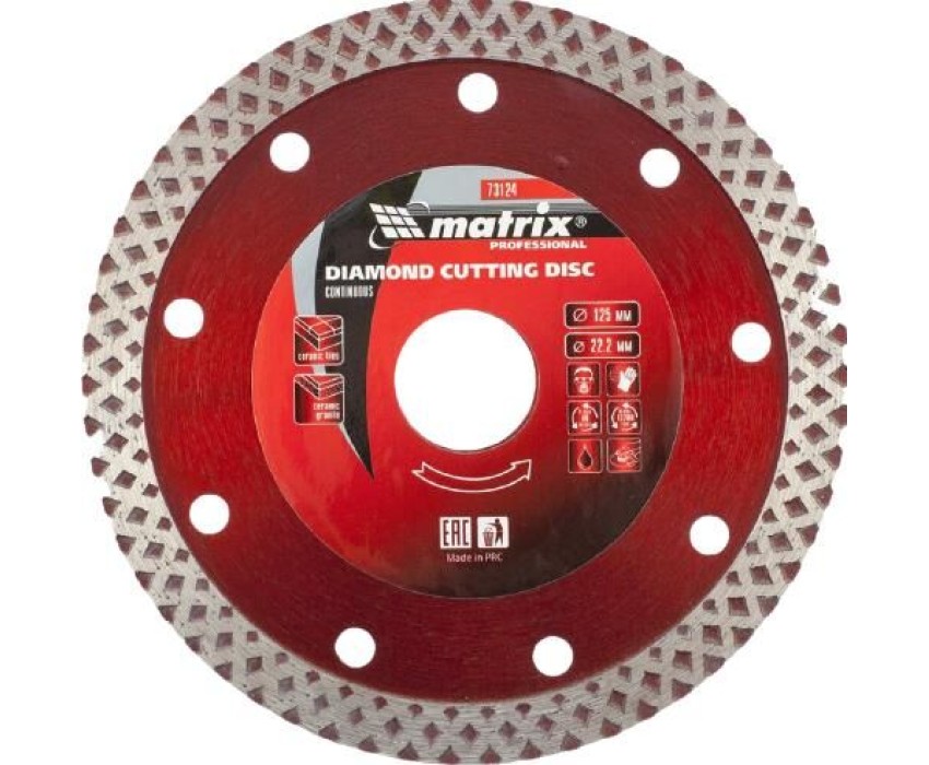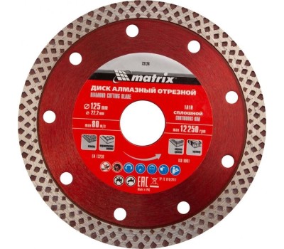 Диск алмазный MATRIX Диск алмазный, отрезной сплошной, 125 х 22.2 мм, сухая резка Professional 73124