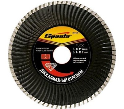 Диск алмазный SPARTA Диск алмазный, отрезной Turbo, 180 х 22.2 мм, сухая резка 731235